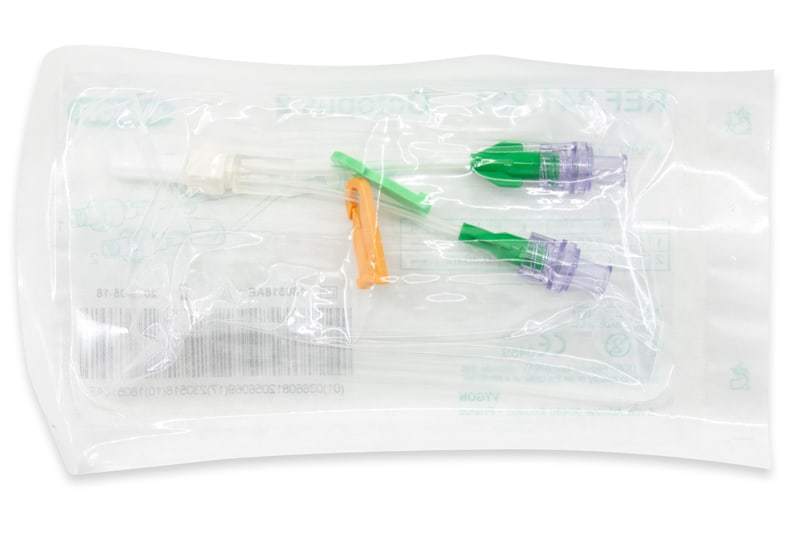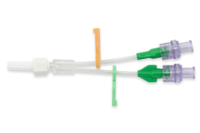 Kod 841.231: rurka przedłużająca o podwójnym świetle z 2 zaworami bezzwrotnymi i 2 zaciskami (zielonym i pomarańczowym).