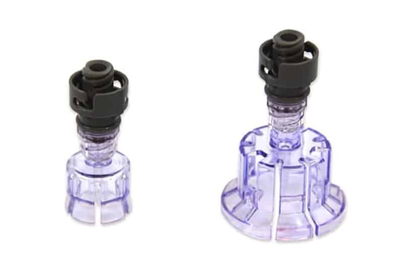 Nasadka umożliwiająca dostęp do fiolki bez igły do małych fiolek z nasadką 14 mm (kody 7219.01/010) lub dużych fiolek z nasadką 20 mm (kody7219.02/020) z plastikowym kolcem.