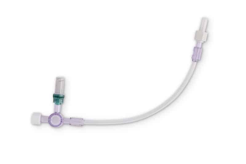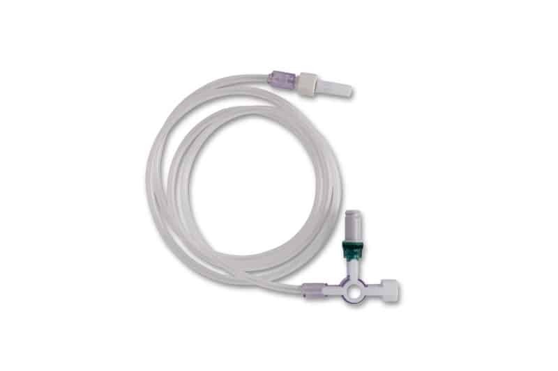 Trójwarstwowa linia przedłużająca (PCW/EVA/PE) z trójdrożnym zaworem spustowym i złączem Bionector.